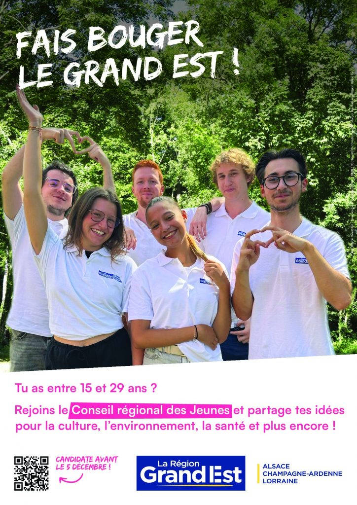 Si toi aussi tu veux t’engager, partager tes idées et devenir acteur du territoire du Grand Est, candidate avant le 5 décembre 2025, sur le site grandest.fr